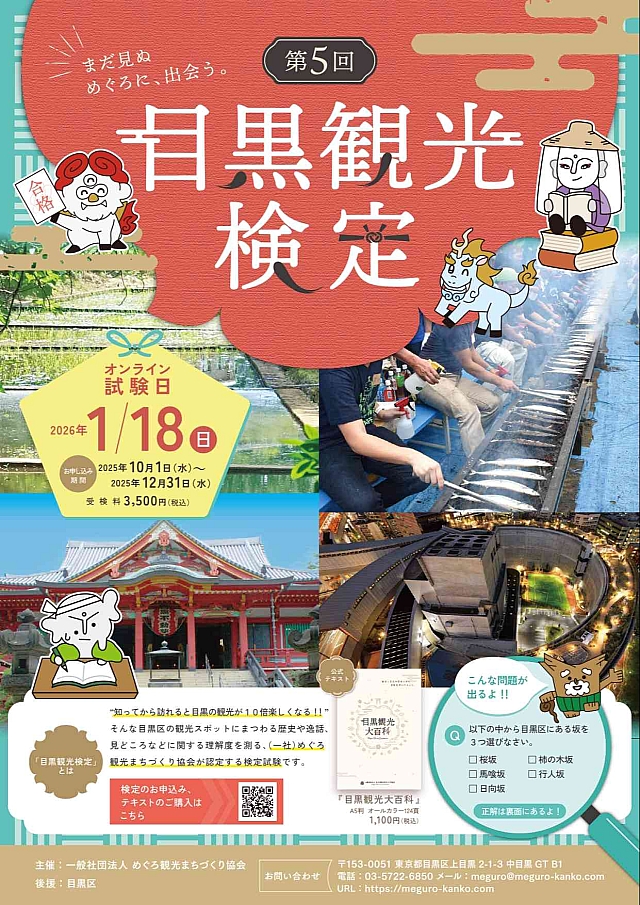 そんな目黒区の観光スポットにまつわる歴史や逸話、見どころなどに関する理解度を測る、めぐろ観光まちづくり協会が認定する検定試験です。